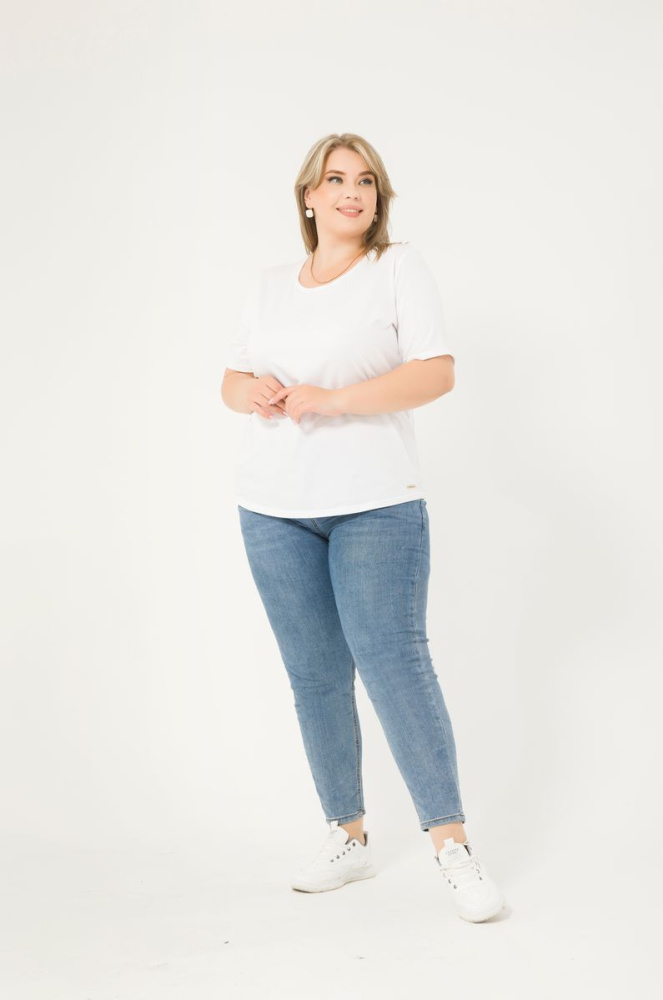 Модель прямого силуэта выполнена из вискозы.Вырез горловины круглый. Рукав втачной, длина до локтя.
