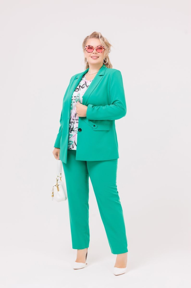 Комплект ( жакет+ брюки) выполнен из ткани «Гальяно ».