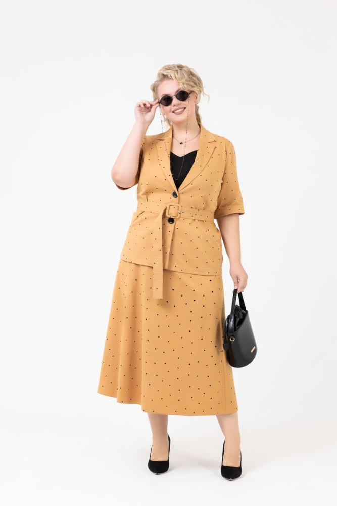 Комплект (жакет + юбка) выполнен из хлопка.