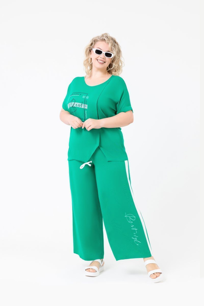Комплект ( блуза + брюки ) выполнен из ткани « Belmando ».