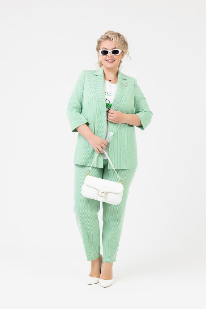 Комплект ( жакет+брюки ) выполнен из еврольна.