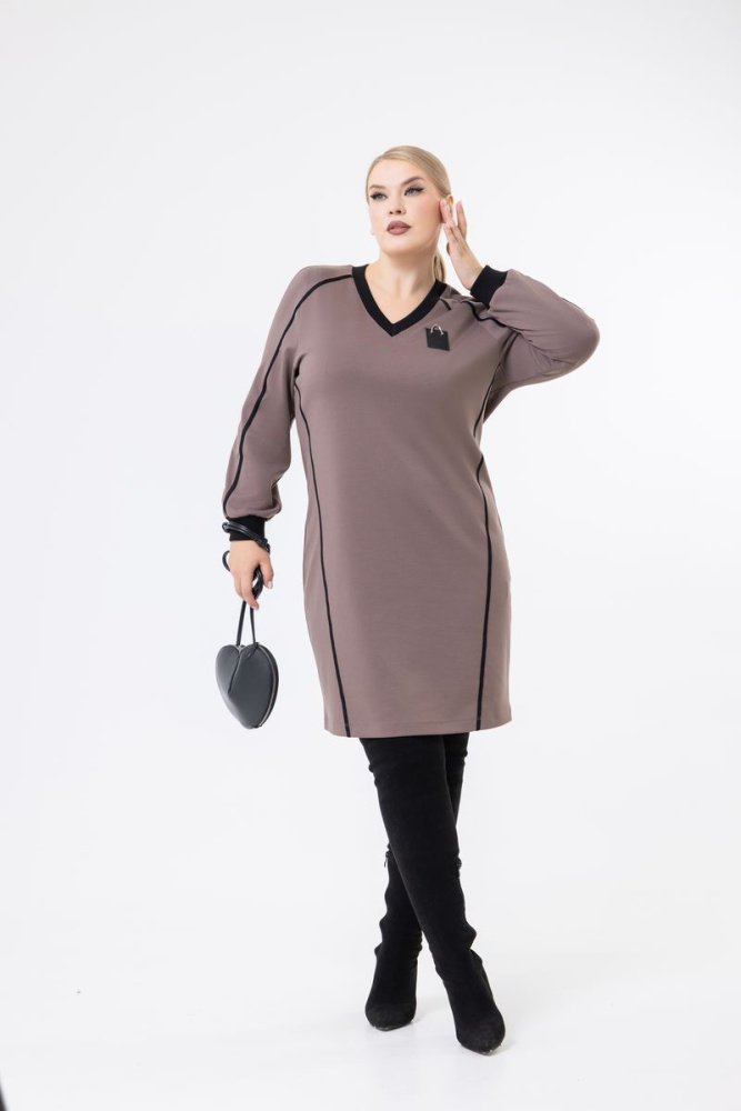 Платье прямого силуэта, выполнено из вискозного полотна. Рукав «летучая мышь», на манжете.