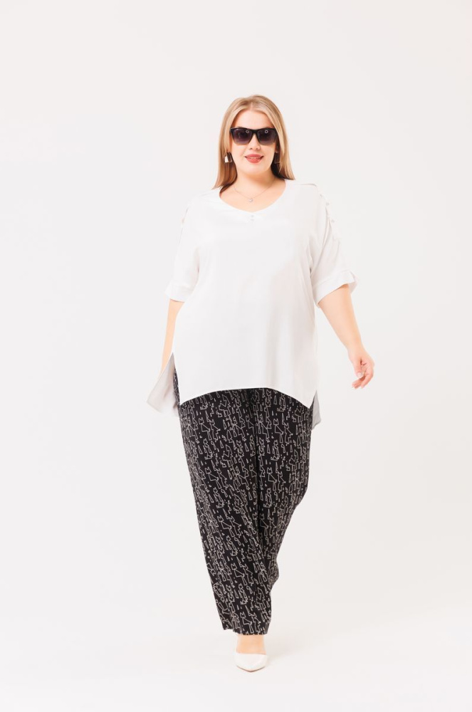 Туника силуэта «трапеция» выполнена из ткани «Belmando”.