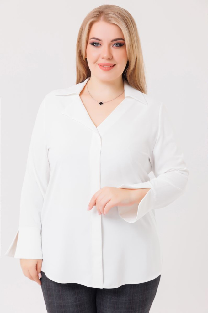 Блузка прямого силуэта выполнена из ткани «Падия». Воротник