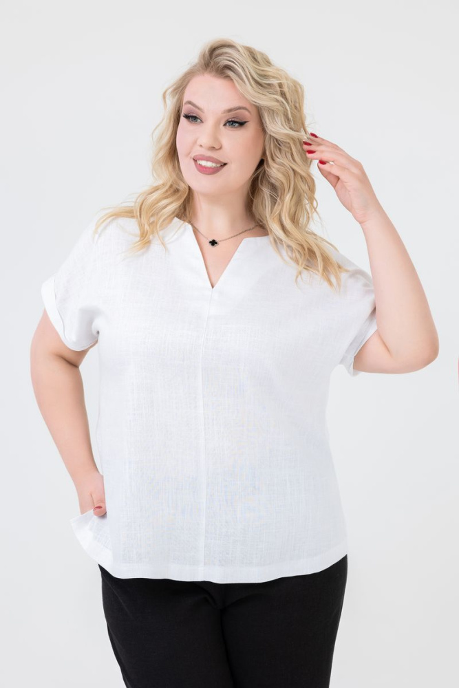 Блузка прямого силуэта выполнена из .льняной ткани.