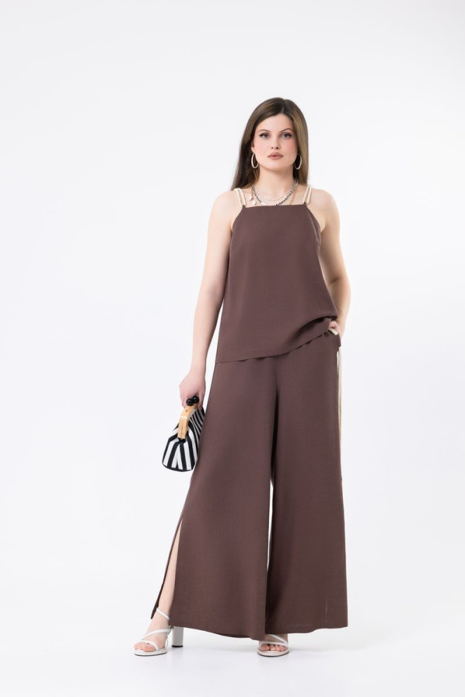 Изделие прямого силуэта выполнено из льняной ткани. По спинке средний шов.