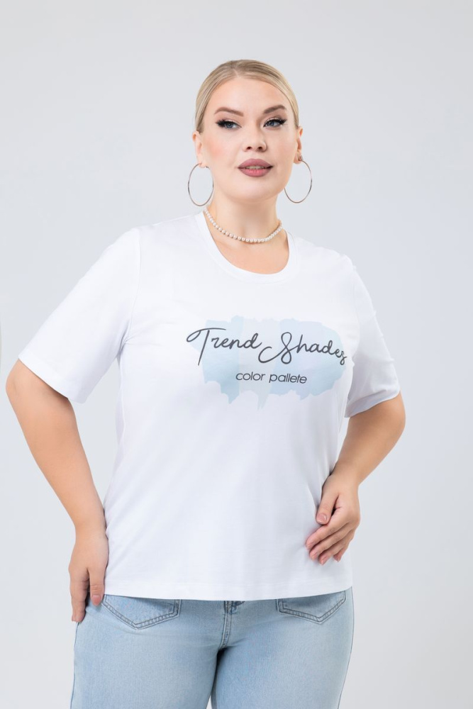 Футболка прямого силуэта, выполнена из ткани «кулирная гладь». Вырез горловины круглый. Рукав втачной. По центру рисунок.