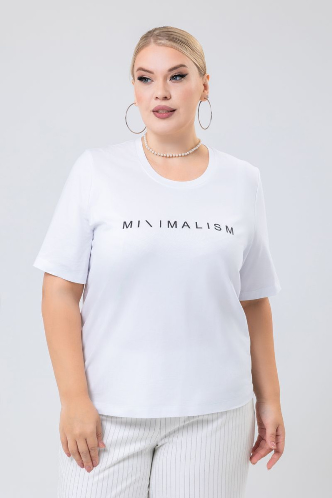 Футболка прилегающего силуэта, выполнена из ткани «кулирная гладь». Вырез горловины круглый. Рукав втачной. По центру рисунок.