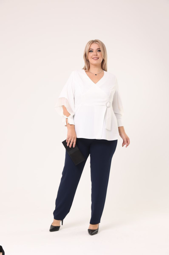 Брюки, слегка зауженные книзу, выполнены из ткани <Мурано>.