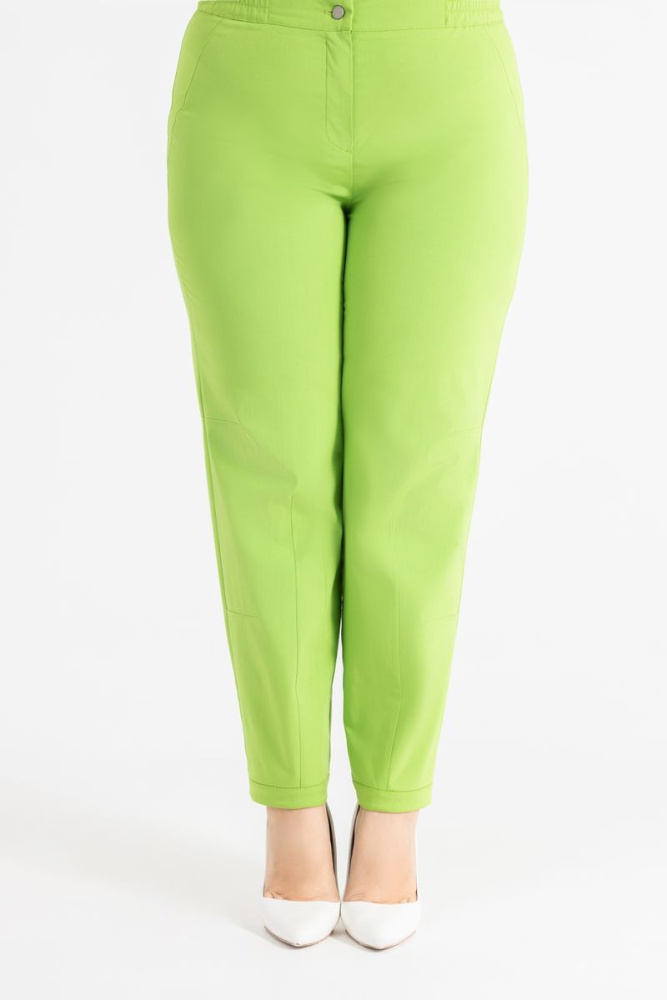 По передним половинкам - подрезы. Застёжка на молнию и пуговицу. На задних половинках - « листочки».