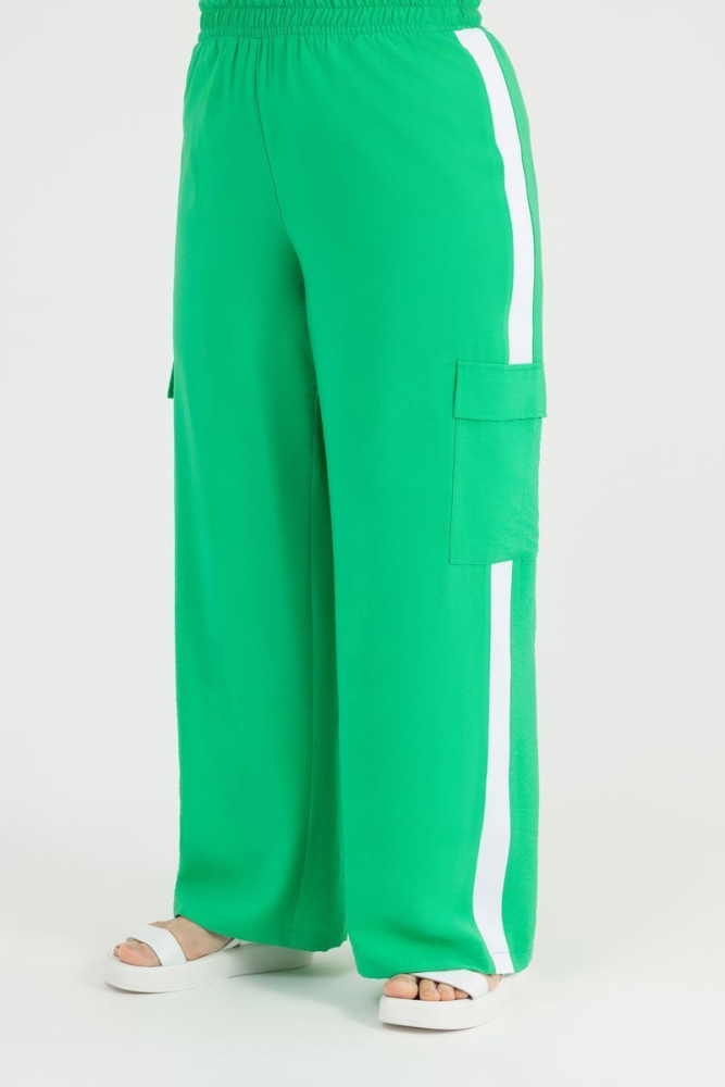 Пояс на резинке По бокам изделия карманы с «клапаном» и лампасы из контрастной белой ткани.