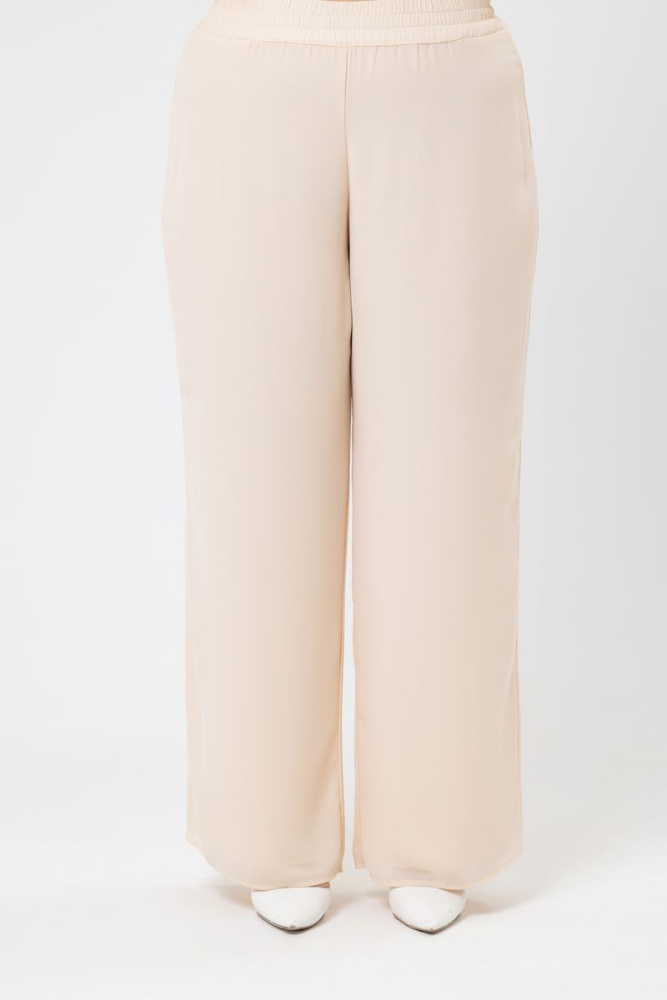 Туника свободного силуэта выполнена из креп-шифона. Вырез горловины V- образный. Рукав втачной, расклешенный к низу. По переду отлетная деталь. В боковых швах разрезы. Низ изделия разноуровневый. Брюки «Трубы» выполнены из двойного шифона. Пояс на резинке. Карманов нет.