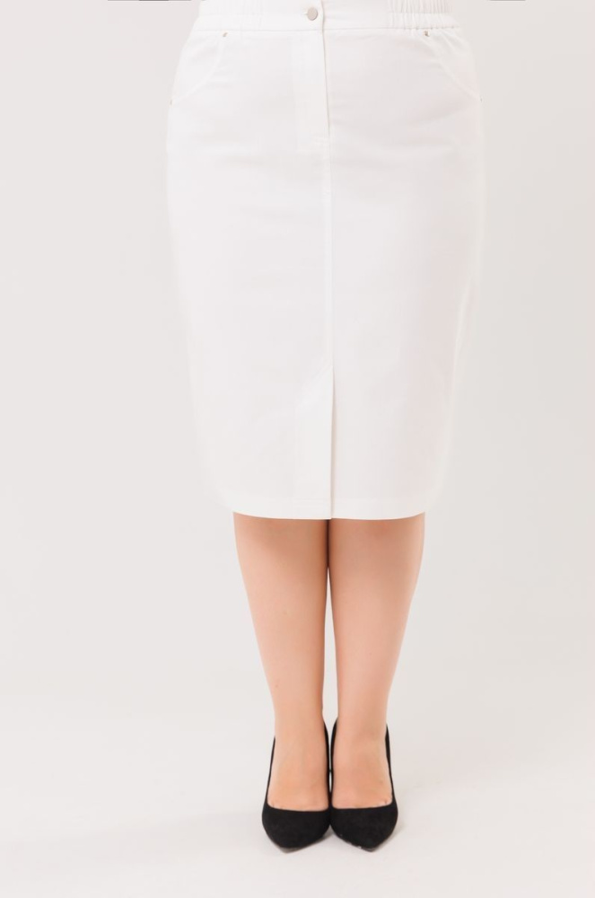 Юбка выполнена из джинсовой ткани. Пояс по переду фиксированный, по спинке на резинке.