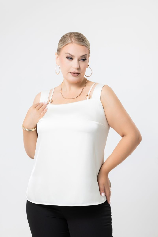 Топ прямого силуэта на тонких бретелях выполнен из итальянского шёлка. В боковых швах — разрезы.