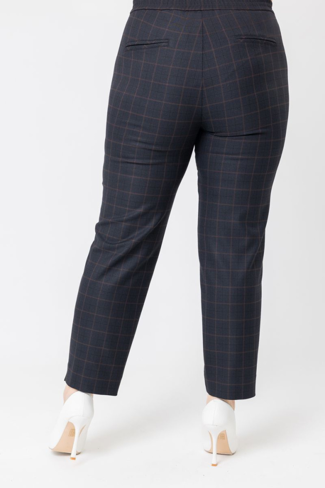 Изделие выполнено из костюмной ткани в клетку. Пояс на резинке. По полочке имитация застёжки ( « гульфик »). По задним половинкам «рамки». По боковым швам, внизу, неболь