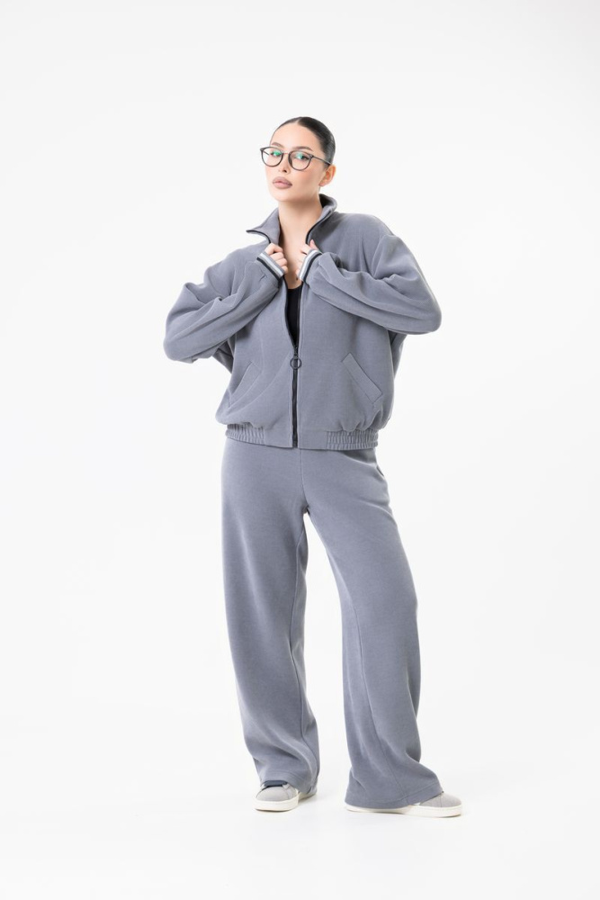 Прямые брюки выполнены из микровельвета. Пояс на резинке. Имеются действующие карманы.