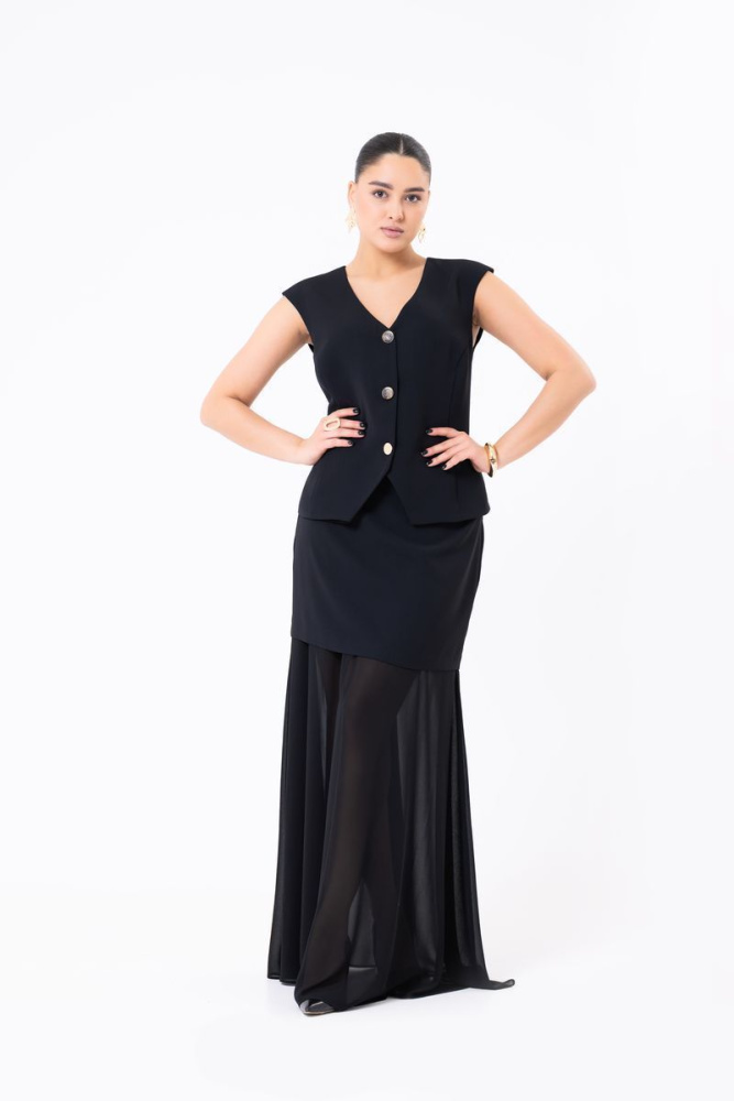 Изделие прилегающего силуэта выполнено из ткани Tommy. V-образный вырез горловины. Слегка спущеная линия плеча. По полочке рельефы. Застёжка на пуговицы. По спинке средний шов.